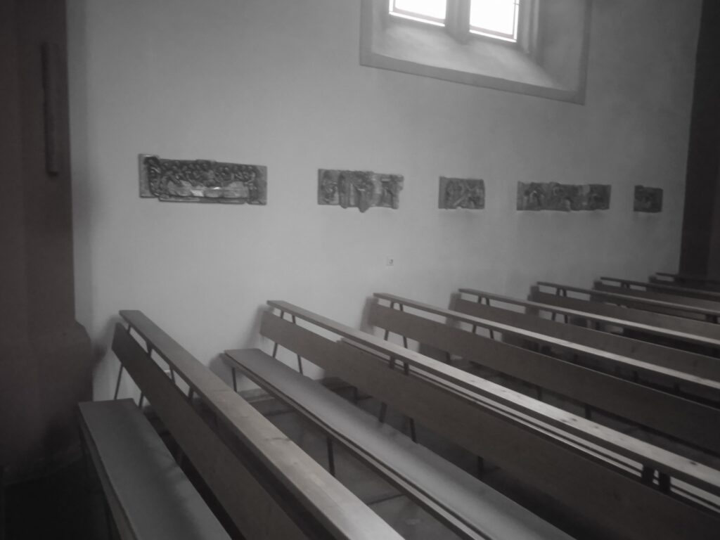 Kostel je velmi prostý, skorprázdný. Je v něm zajímavá křížová cesta.