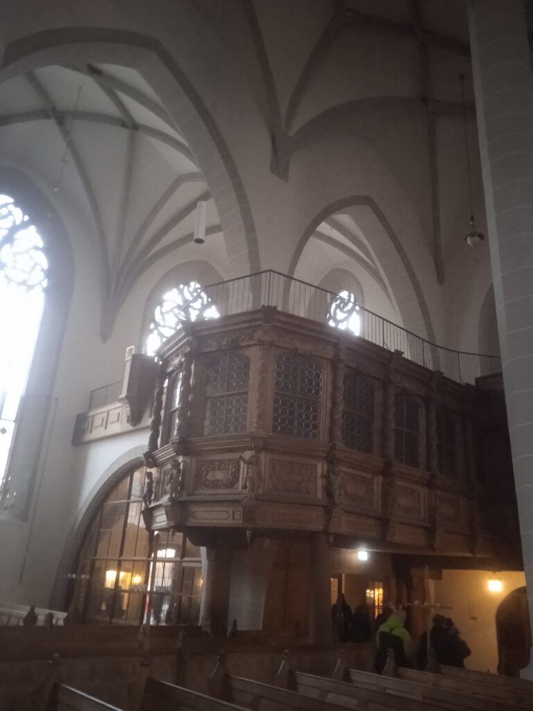 I jižně, resp. jihozápadně od středu , nad údolím města se uchovaly hradby a pod nimi spousta zajímavých domečků. To už však můj vybitý mobil nezachytil. Stačil ještě zachytit Michaeliskirche u Vodní brány, kde se právě připravovalo nadšeně a amatérsky adventní muzicírování…