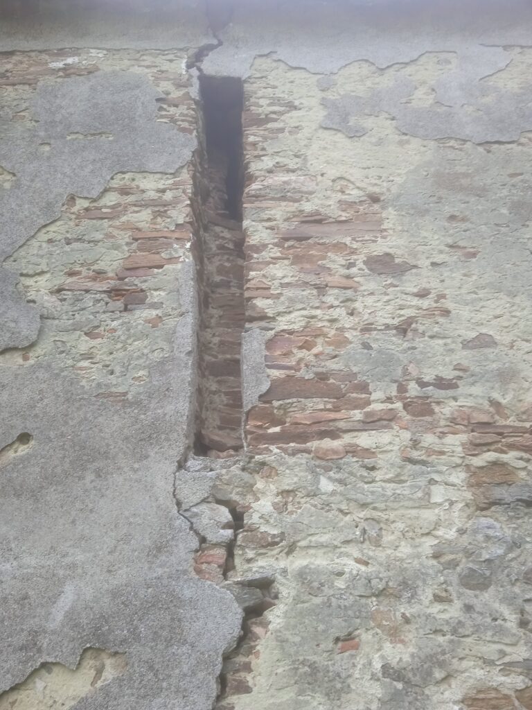 Po pravdě mě na to, že nejde o běžné stavení, upozornila podivná škvíra ve zdivu stodoly, okolo níž jsem procházel; vzápětí se mi ale odkryl pohled na celý zámek