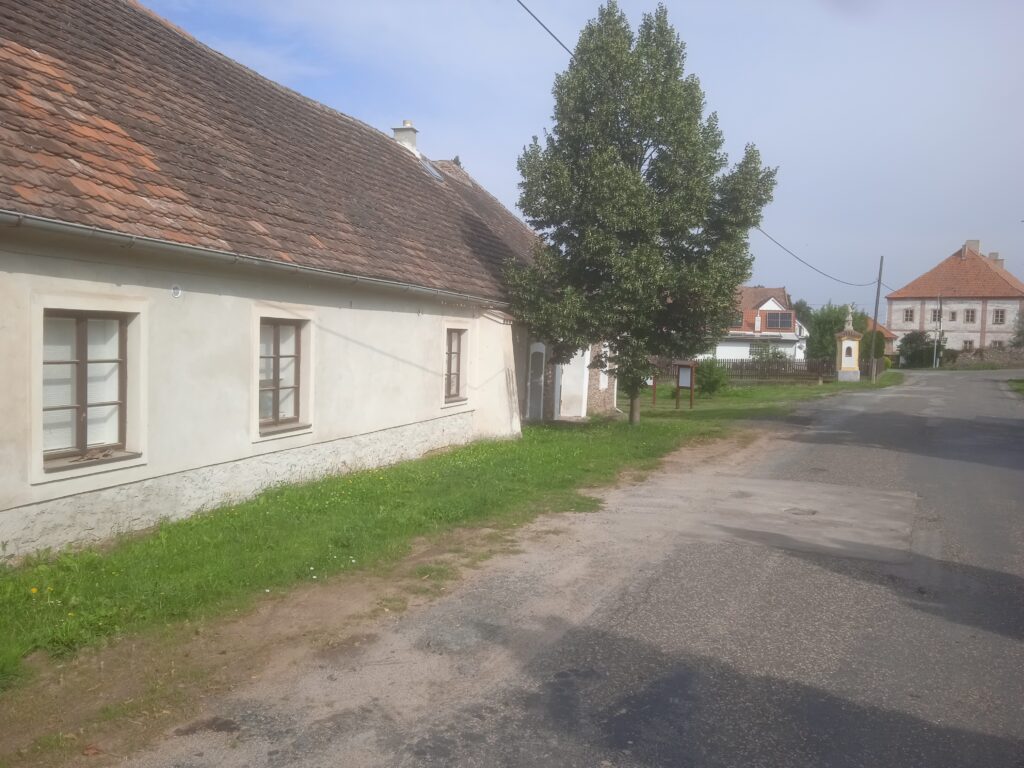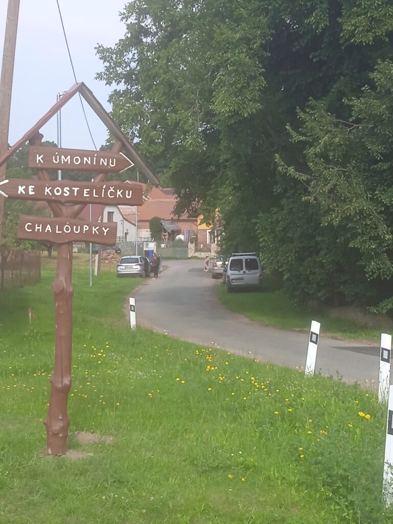 Hned vedle této tabule se nalézá další, zasvěceně popisující historii a život této velmi samostatné a agilní osady: O historii panství, do něhož spadá i sousední Úmonín, a jeho majitelích, o lidech ve vesnici i o rodákovi Bedřichu Havlenovi, jehož tragický a temný příběh přiměl k návštěvě obce i T.G.Masaryka. Nebudu se zde o něm šířit, je o něm tuším pořad na Paměti národa, ale dočtete se o něm i ve středně obšírných publikacích věnovaných První světové válce.