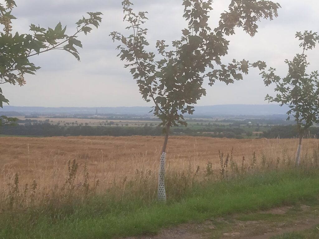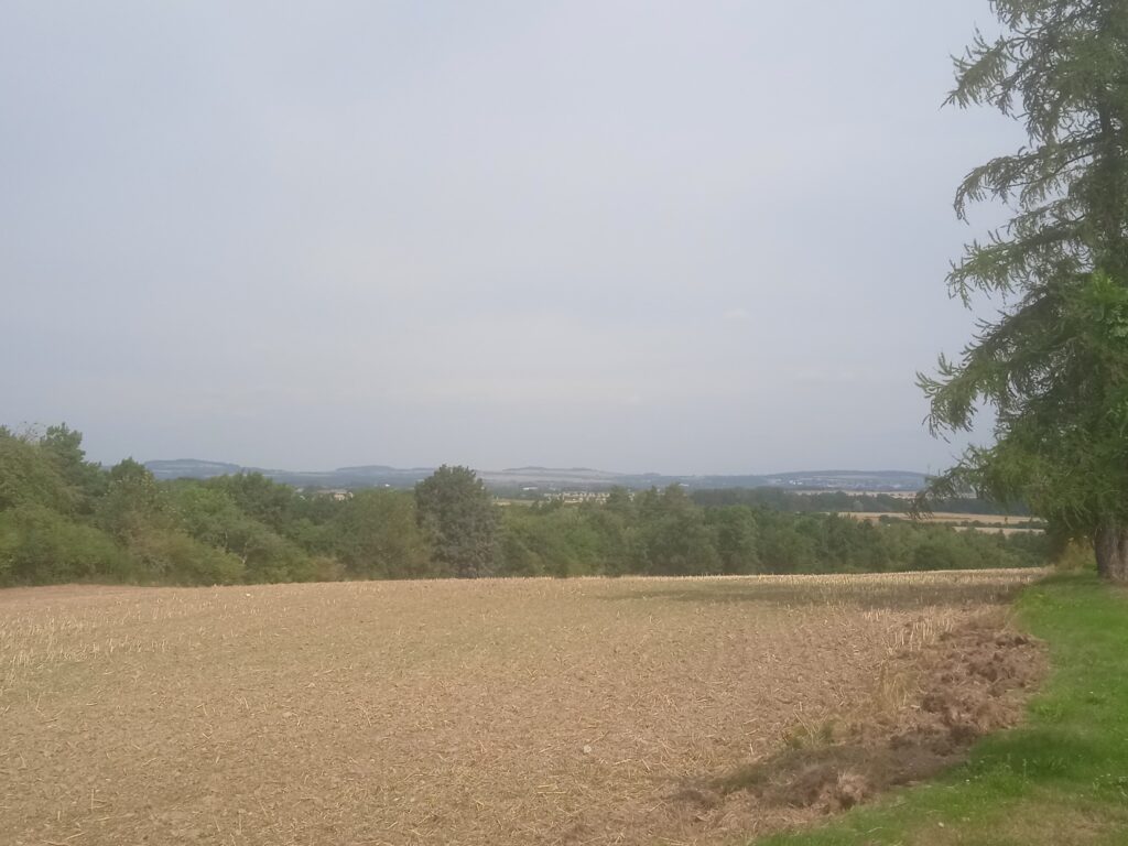 Tolik k Nové Lhotě. – Docela pěkný výhled , i když ne takový, se otevírá i z cesty na Úmonín, o němž již víme, že byl součástí téhož panství a stojí v něm další zámek. Proto jsem po sestupu z návrší zamířil právě tam.