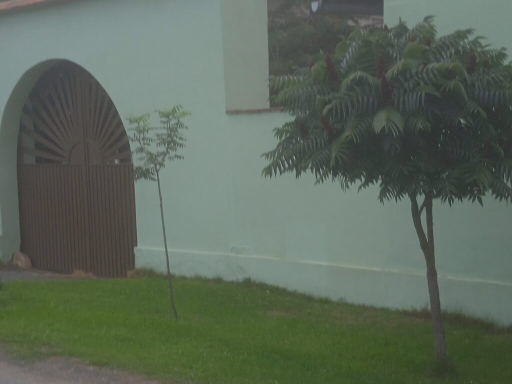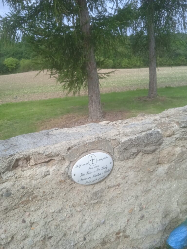 Není divu, vždyť je také čerstvě opravený. A to auto, jež je vidět na prvním obrázku, nepatří zedníkům či restaurátorům, ale hrobníkům, kteří právě připravovali na malinkém hřbitůvku nový hrob. Ten je opravdu dojemný – tady ležet…