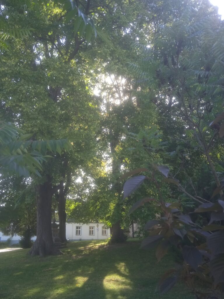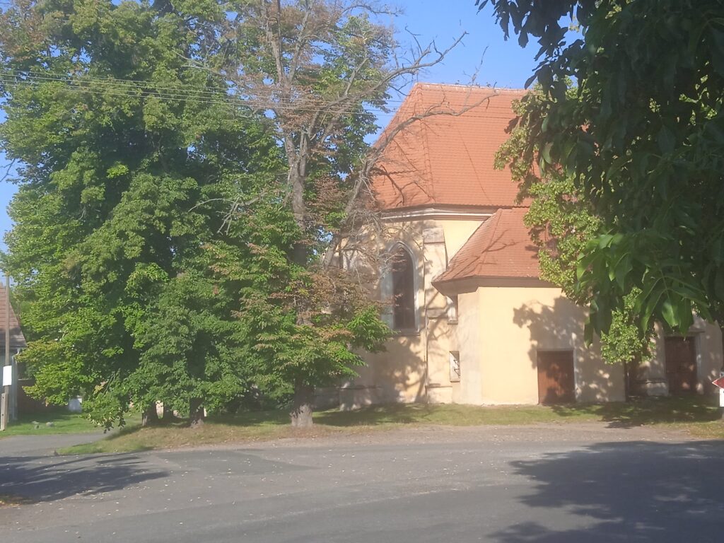 Prošli jsme tedy stavebním vývojem kostela v Potěhách jaksi pozpátku, zpět do hlubin minulosti, a nyní se nadechněme a vyjděme z kostela opět ven, pod překrásné lípy ho zcela – až na západní stranu, která je vůbec nějak problematická; nechci ze sebe dělat senzibila, ale něco je na ní nepříjemného – kol a kolem obklopující…