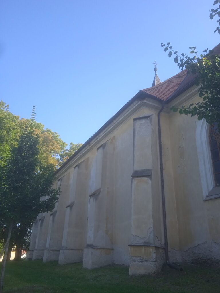Ovšem dnes bychom ji marně hledali, na jejím místě je toto. Přestavba v roce 1659, které převážnou měrou vděčí kostel za svůj dnešní vzhled totiž nebyla poslední – proběhlo ještě mnoho dalších úprav a dostaveb, mimo jiné i ony regotizační úpravy z 2.pol.19.stol, od nichž pocházejí ony opěráky. A jak je vidět, poslední modernizační úprava proběhla zcela nedávno.
