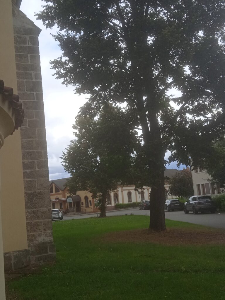 Celé to kostelní náměstíčko s protilehlou hospodou-sokolovnou je pak velmi příjemně zahaleno do korun lip (a myslím i nějakých akátů nebo jasanů).