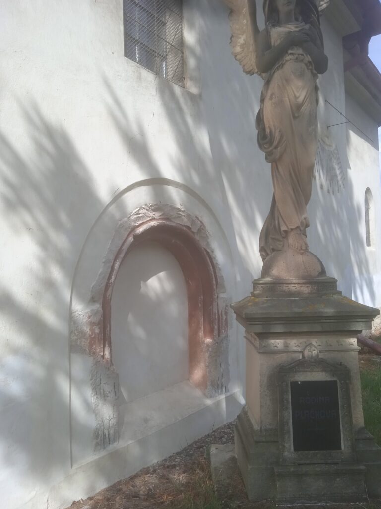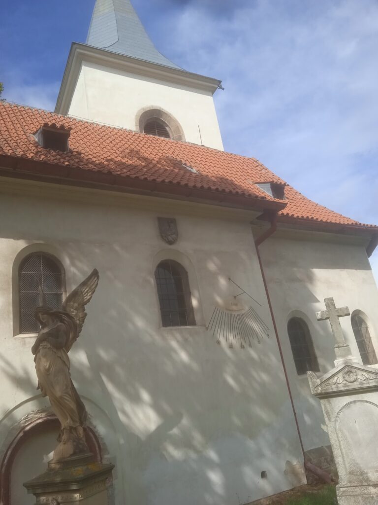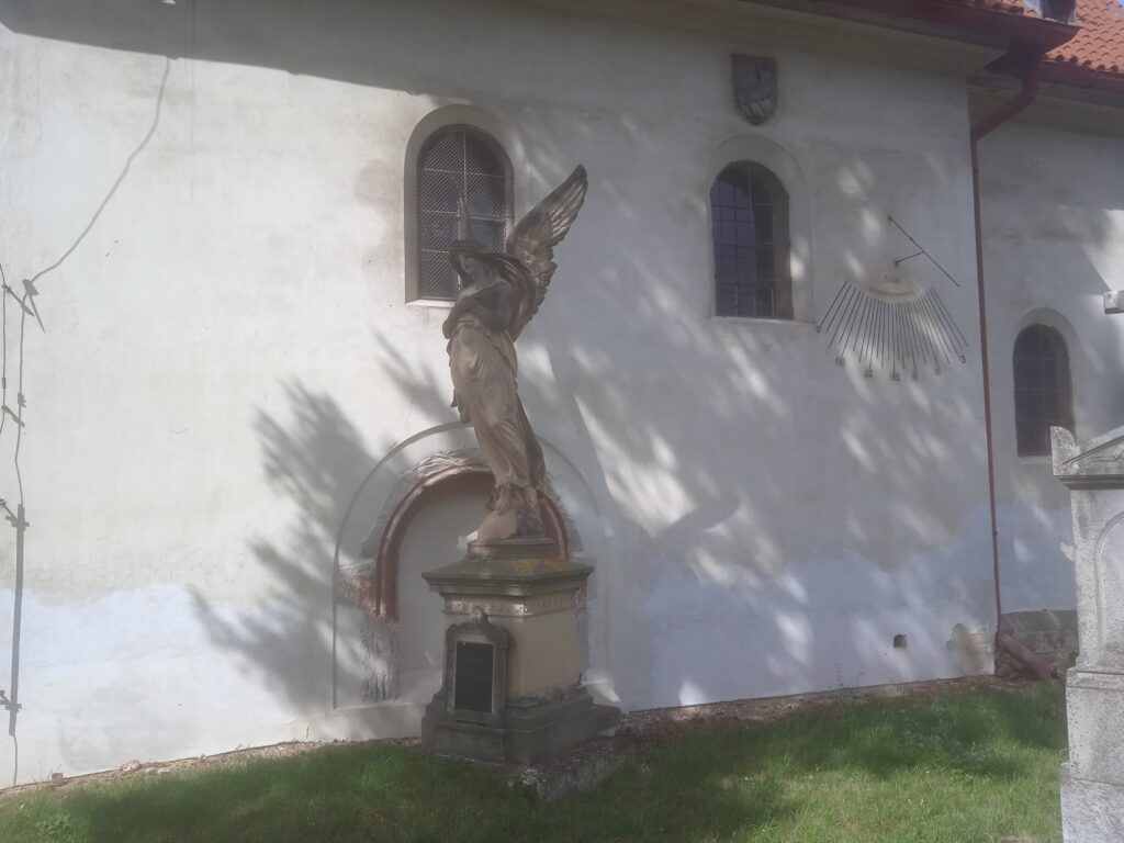 … a býval obklopen hřbitovem, ne němž je dosud část náhrobků.
