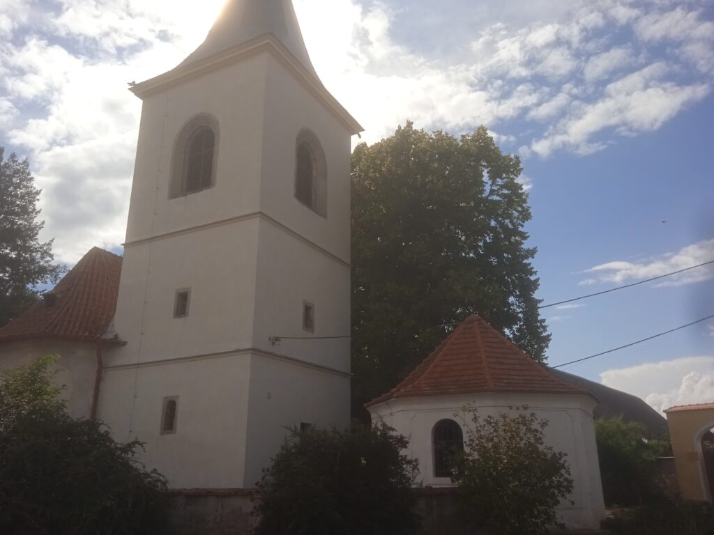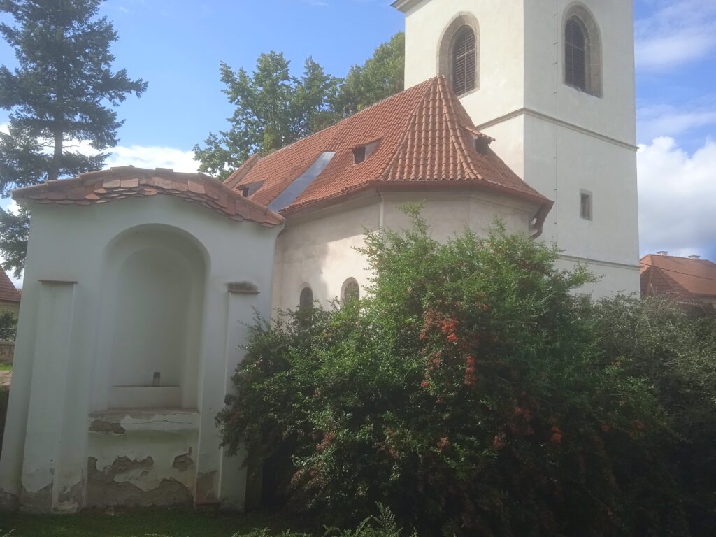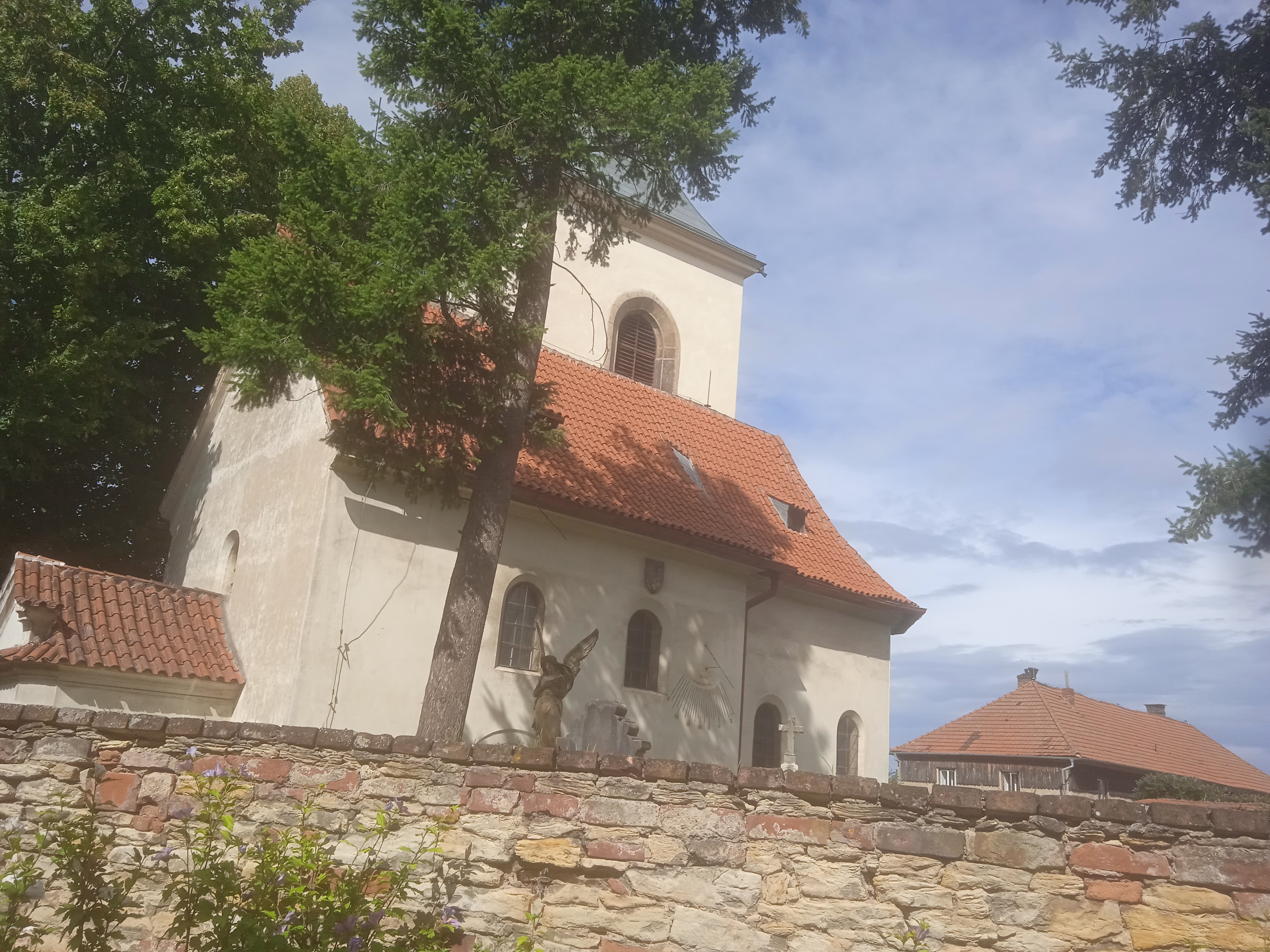 Kostel stojí na jakémsi oválném náměstíčku – ani se mi nechce říci návsi, protože vypadá mnohem vznešeněji (je zčásti travnaté a zčásti dlážděné!) a je také položeno excentricky mimo komunikační osy obce…