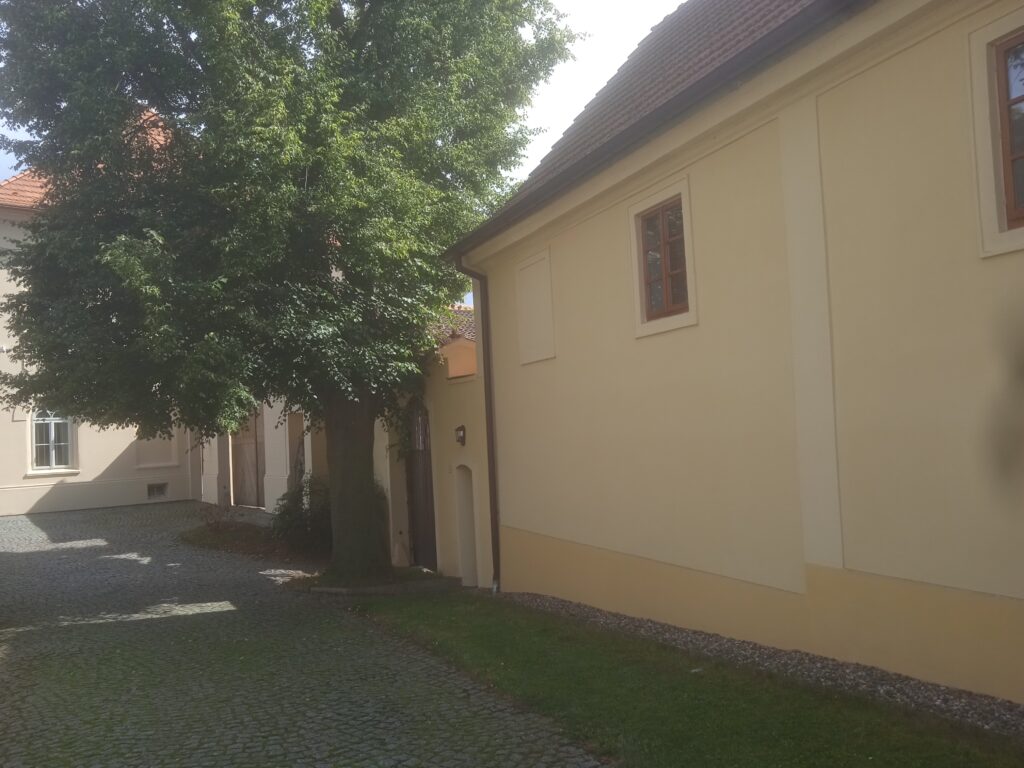 Mezi ní, kostelem a sousedním hospodářským stavením je velmi pěkné stinné zákoutí.