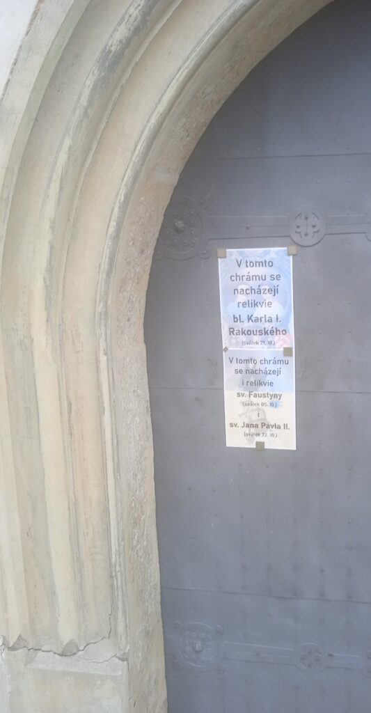 K tomu, co je uvnitř, je zajímavé i upozornění na dveřích. O sv.Faustyně nic nevím a také ne, jak si sehnali „ostatky“ Karoła Wojtyły, nejpopulárnějšího moderního papeže a velkého hybatele davů, ale vzhledem k jeho popularitě a určitě i „byznysu“ s jeho slávou to nemuselo být tak těžké.