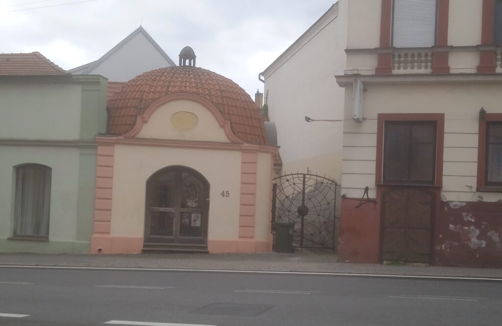 Nedaleko, na hlavní ulici pod zámkem je třeba tato bezejmenná kaplička, už dávno proměněná na obchod.