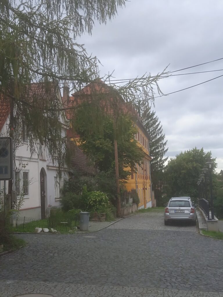 A hned vedle ní je další pozoruhodnost: takové skryté „čarodějnické“ náměstíčko, dnes obývané nepochybně uměnomilnými lidmi (jakkoli i tam blokují leckterý pohled auta 🙁 ). Čím bylo původně těžko říci, ale tipl bych si, že to býval maličký „štetl“, židovská čtvť.