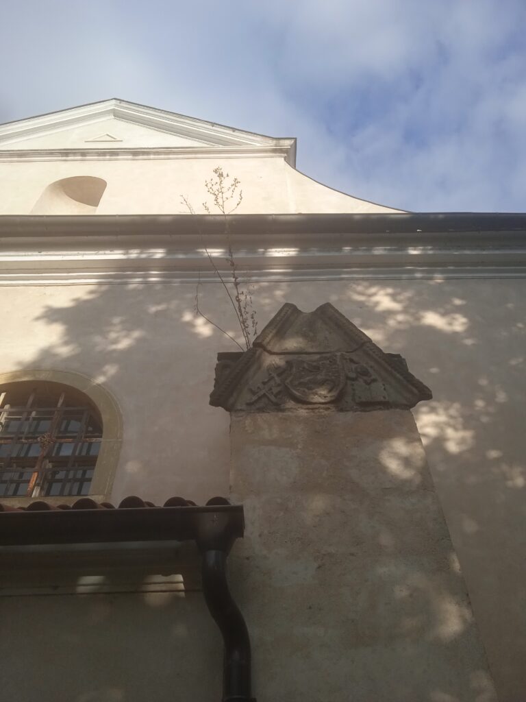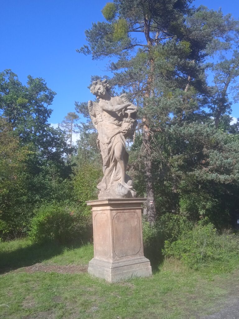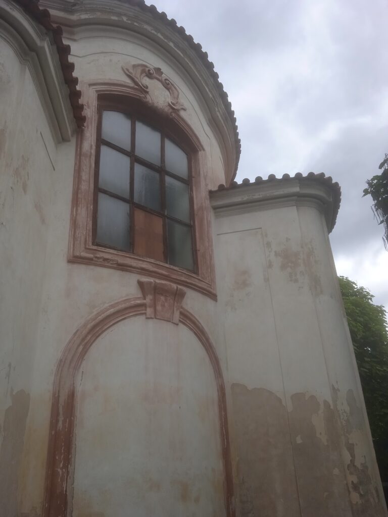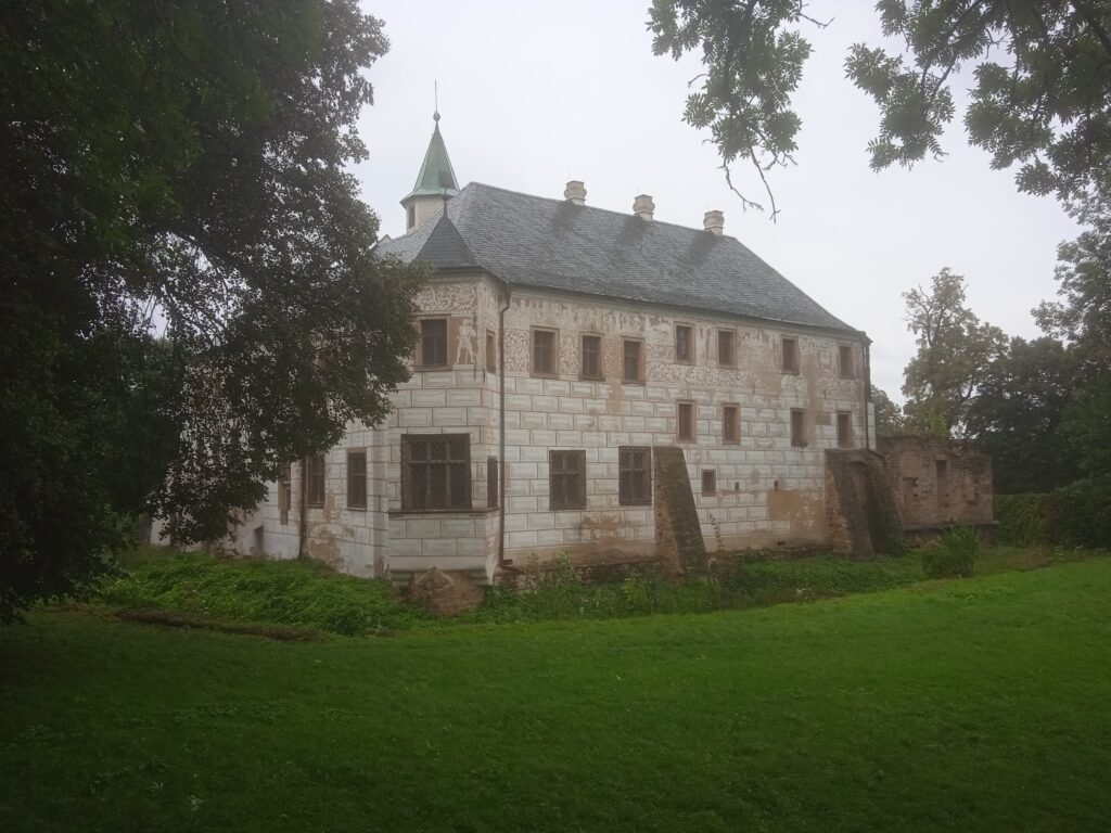 Zámecká fasáda není v nejlepším stavu – sgrafita (a jsou tam i figurální) by si věru zasloužila opravu: