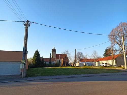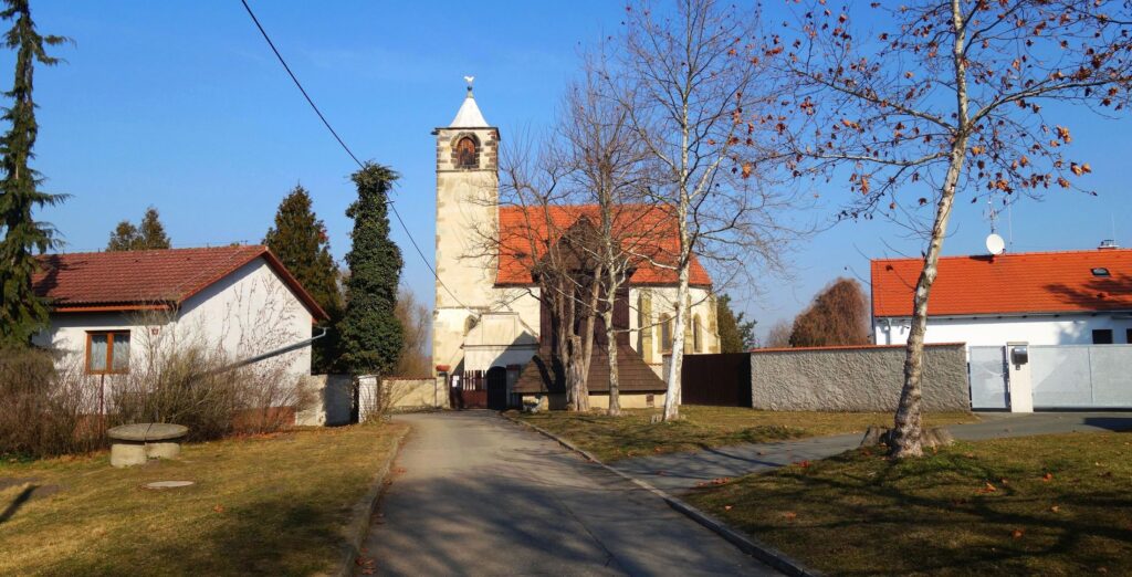 Ačkoli samotné moderní Neratovice snad mají jakýsi malý kostelík či kapli, já jsem ho po cestě neobjevil, a tak prvním sakrálním zastavením této etapy jsou až Lobkovice, které jsou právě tak jako Libiš připlácnuty k Neratovicím, jenom z druhé strany. Nejsou nijak velké. Mají trojúhelnou náves a na jejím konci podsaditý, ale pěkný barokní kostel obehnaný zdí.