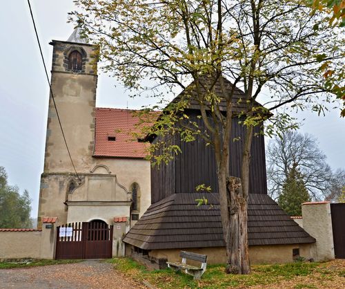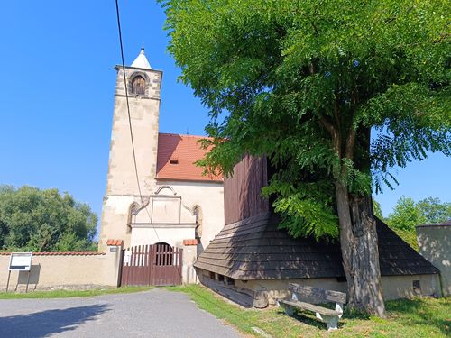 Pak už se přiblížíte natolik, abyste rozpoznali před kostelem dřevěnou zvonici…