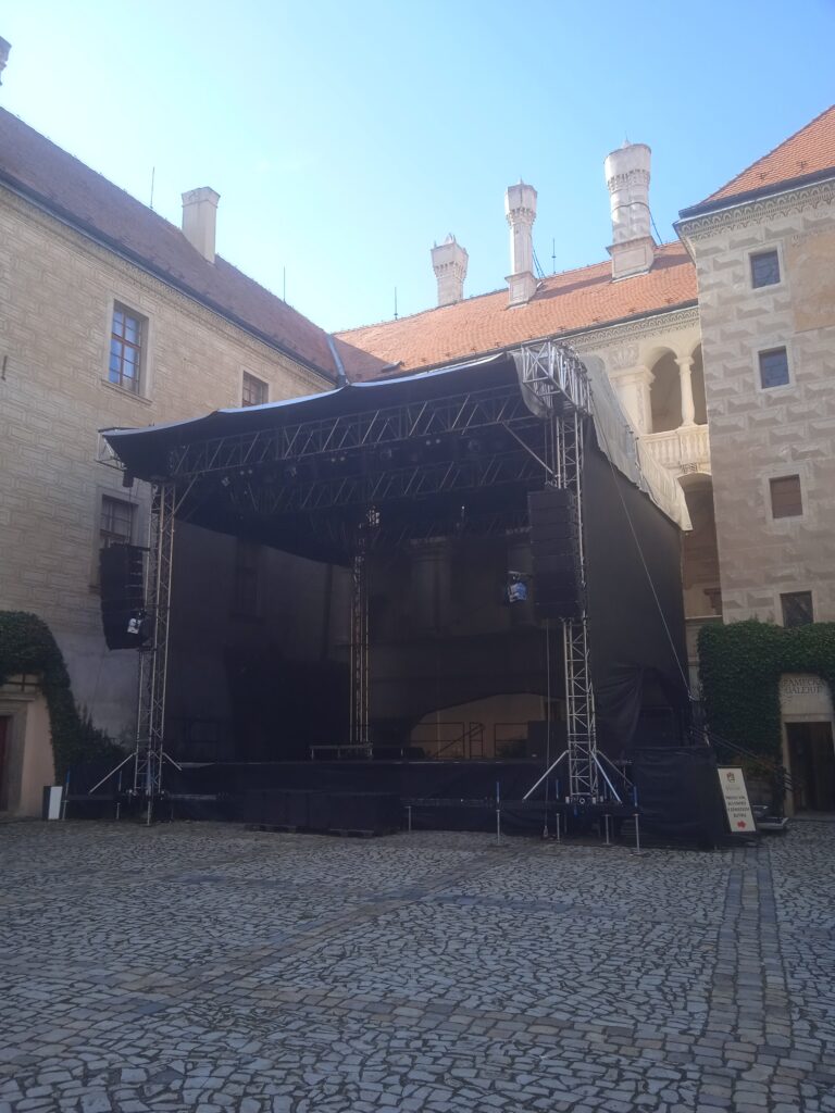 A na závěr něco méně pěkného: Renesanční nádvoří mělnického zámku by bylo jistě velice krásné, kdyby… – nu, podívejte se sami.