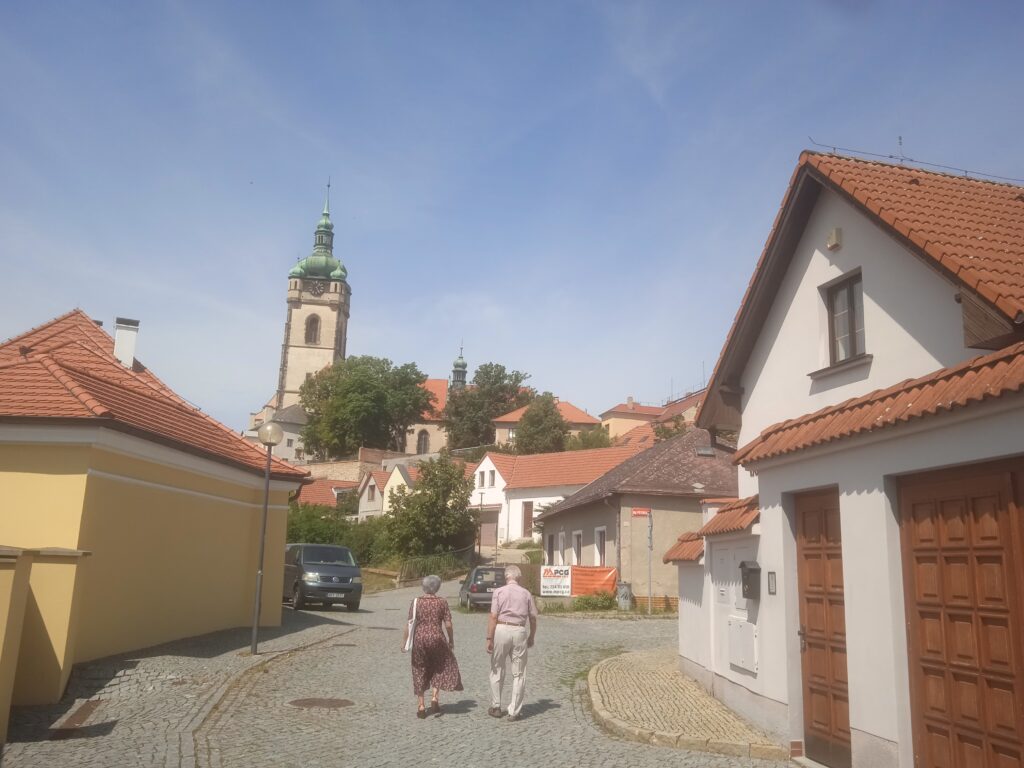 Od kostela seběhneme krátkou zatáčející a dlážděnou (!) uličkou a jsme – u Labe!