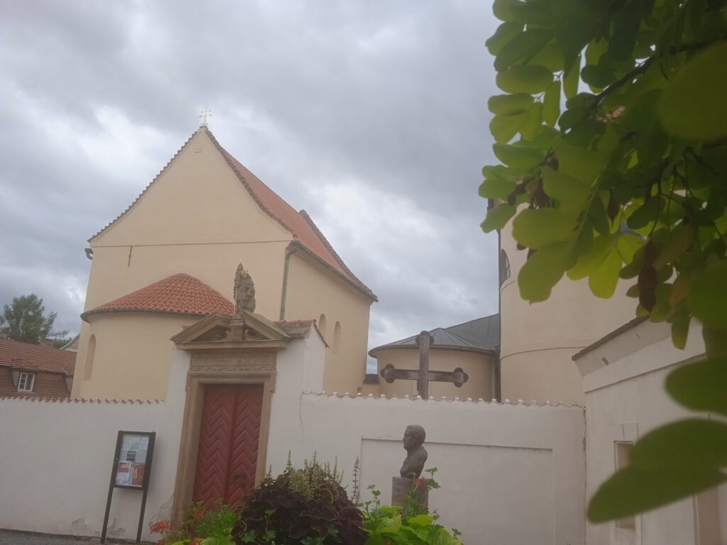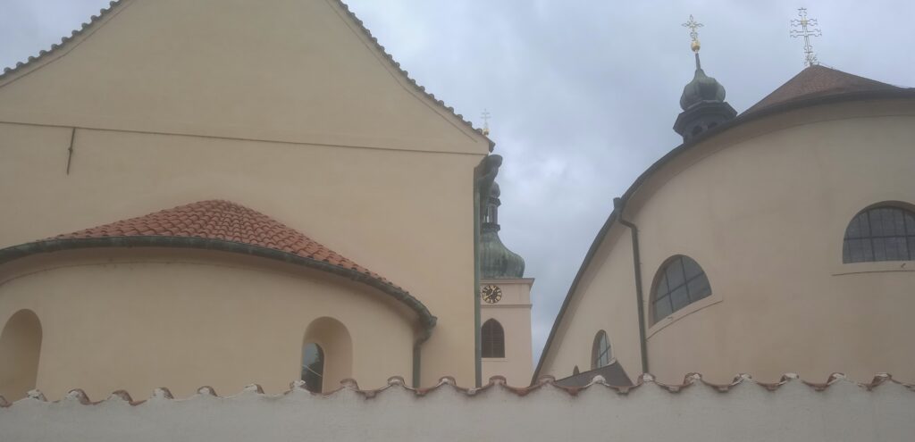 Tohle je pohled na svatováclavský areál skoro ze všech stran. Zajímavé je, že samotný areál zahrnuje ještě jeden kostel. Člověk je v pokušení považovat ho za onen původní kostel sv.Kosmy a Damiána na jehož vysvěcení byl Václav svým bratrem tak tragicky pozván. Ale není to on. Je to o něco mladší kostel sv.Klimenta (i když už toto zasvěcení, které se používalo v samotných prvopočátcích českého státu ukazuje na jeho pořádnou starobylost.)