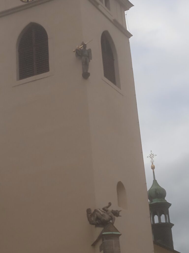 A na samotné staroboleslavské bazilice ho máme jednoznačně prezentován, a to na věži, kde je nahoře Michael a dole padající a svržený drak.