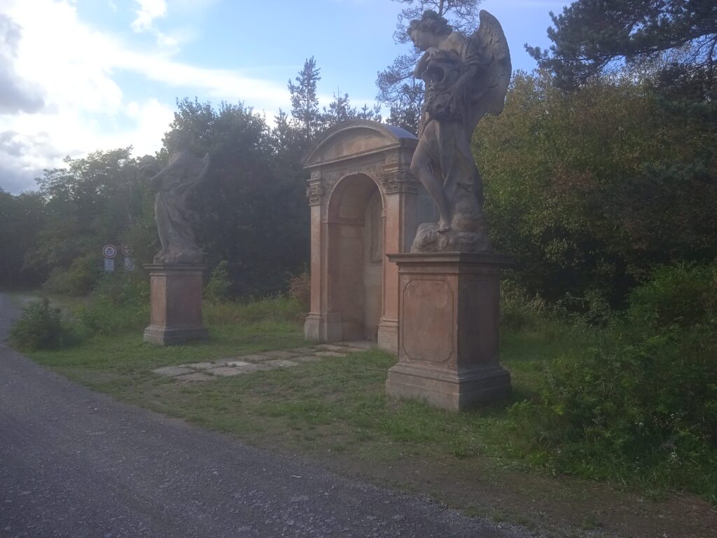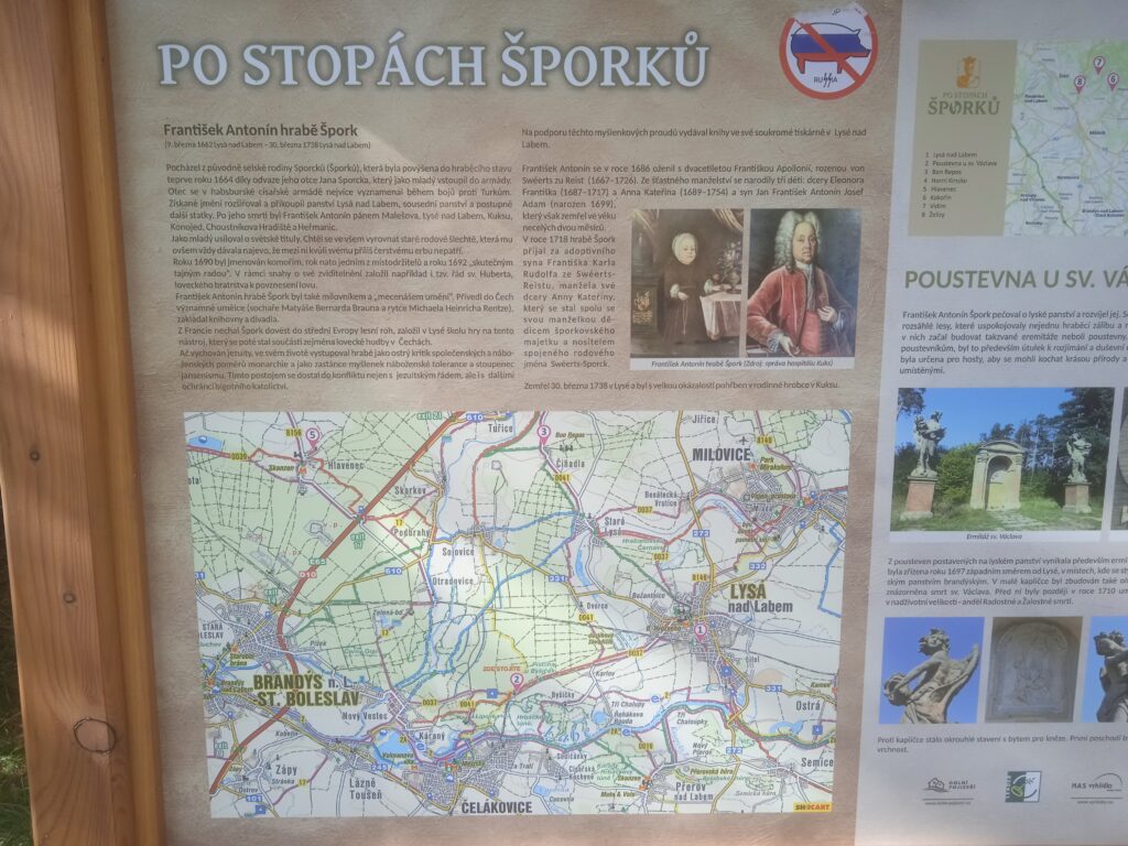 Nuže ona to tedy není vlastně žádná poustevna, je to jen zajímavé a nápaditě ztvárněné místo, jakých je, anebo aspoň bylo ny Šporkovských panstvích mnoho (Lysá nad Labem byla dlouhá léta, než ji Špork prodal právě takovým panstvím); v tomto případě vybaveném dvěma monumentálními nádhernými Braunovými anděly. Navíc je to místo hned při trati z Lysé na Prahu, takže si ho všimne i každý pozornější cestovatel ve vlaku, a vlak hraje i v jeho historii jistou úlohu. (Tedy ne že by tam jezdil vlak, když ji Špork stavěl, ale nepředbíhejme.) Dále je to turistické místo vybavené běžným turistickým komfortem – stoly, lavice, ale hlavně velice podrobnými informačními panel úplně o všem, co s tímto místem souvisí.