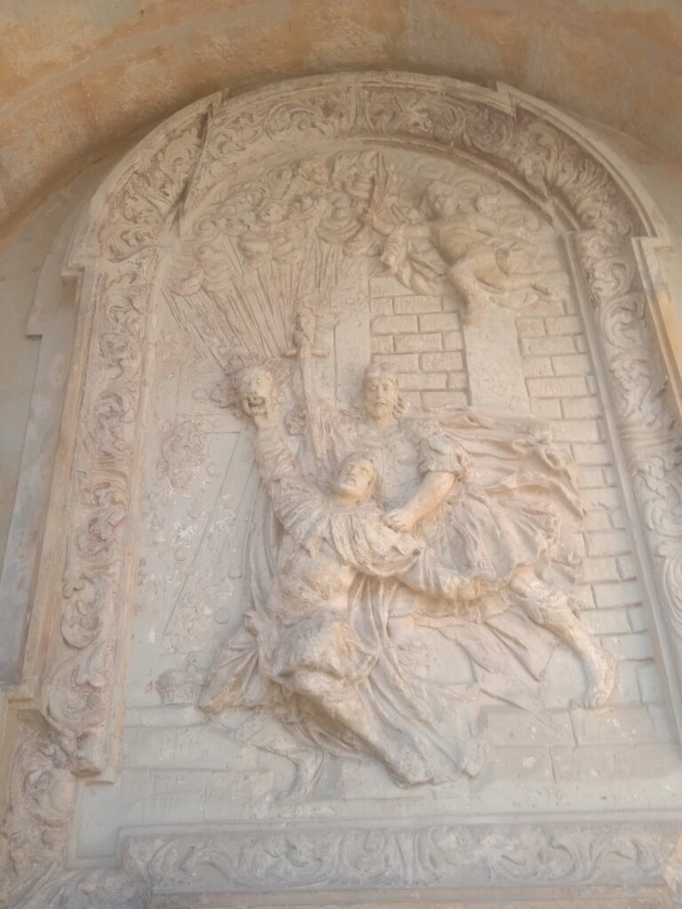 Při odchodu si pak můžeme všimnout značky pro povodeň – vskutku děsivá je představa vody zaplavující – v uvedené výši! – tento skvost