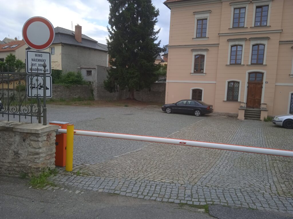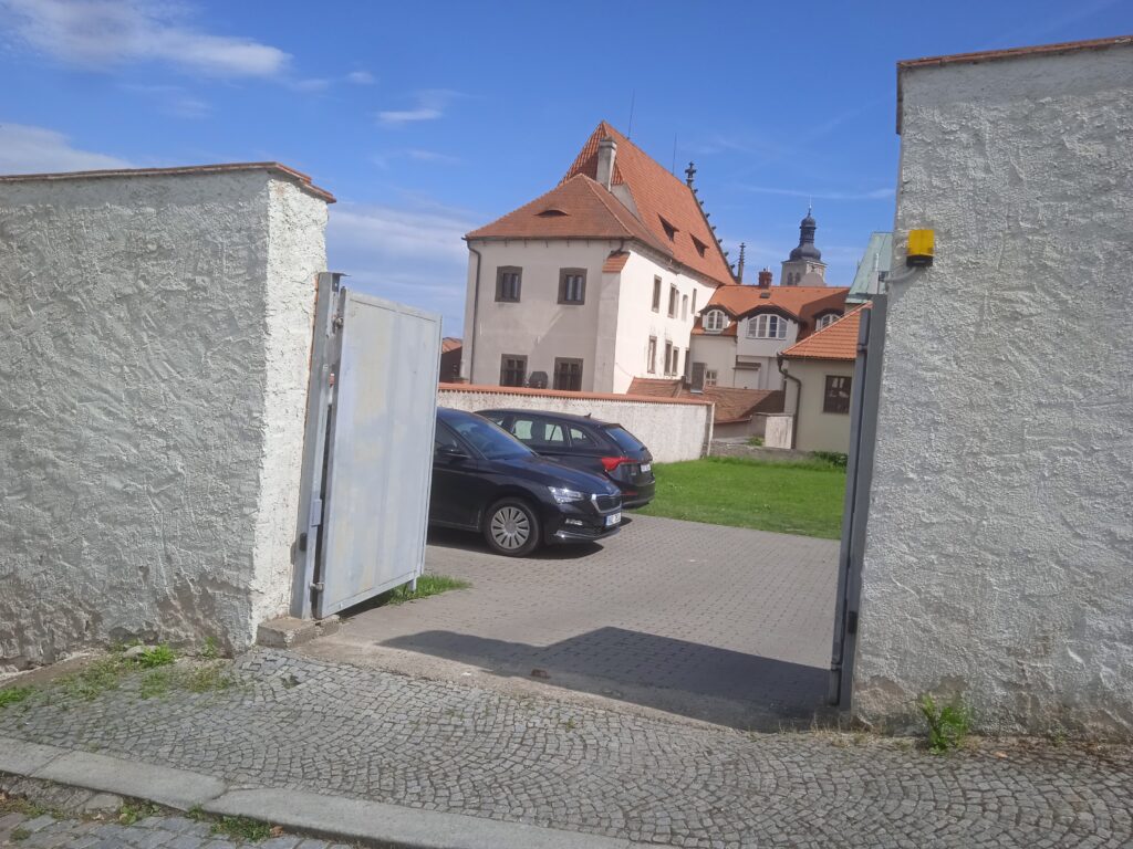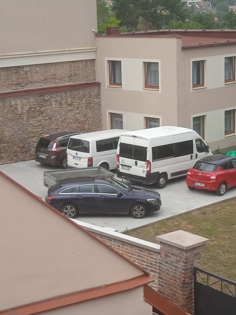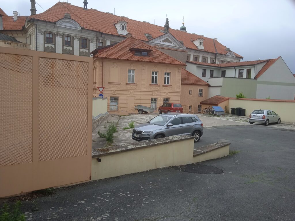 Dále: Už při mém přistěhování mě udivilo, že historické centrum není tak kompaktní jako bývá v historických městech jinde, ale obsahuje celou řadu proluk a vnitrobloků. Některé byly inovativně zaplněna – například pěkná stavba knihkupectví na Tandlmarku (Komenského náměstí) s nápodobou „městské věže“. Ovšem tyto plochy (hlavně vnitrobloky) jsou většinou v soukromých rukou a vlastníci šmahem vykazují „vysokou kulturní uvědomělost“ a estetickou zdatnost, neboť je místo v zahrádky s besídkami a lavičkami, nebo třeba fontánkami anebo vůbec něčím pěkným proměňují – v parkoviště. Toto je třeba pohled z mého okna dovnitrobloku sousedící státní instituce (v gesci Ministerstva školství). „Stavěli“ to parkoviště loni v létě – trvalo to několik měsíců, během nichž po ploše pojížděl bobtail případně dva, tři pracovníci se sbíječkami nebo dusačkami, dělajíce hrozný kravál od rána od osmi do čtyř odpoledne po celou pracovní dobu – po dobu několika měsíců. Ani si nechci představit, kolik peněz za tuto mega akci zmíněná státní instituce vyplázla – peněz, vyhozených ne za nic, ale zmařených, protože díky nim se stav místa zhoršil, nikoli zlepšil
